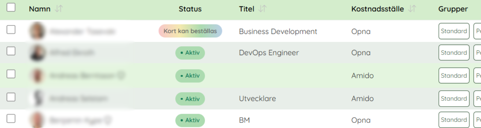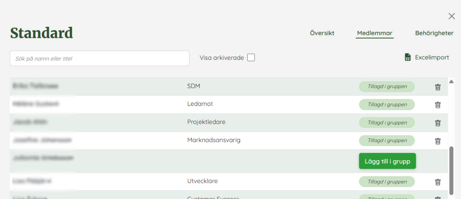 3. Klicka på "Medlemmar" och lägg med de personer (vanligtvis samtliga) och även temporära kort som ska få behörighet på genom att klicka på "Lägg till i grupp".