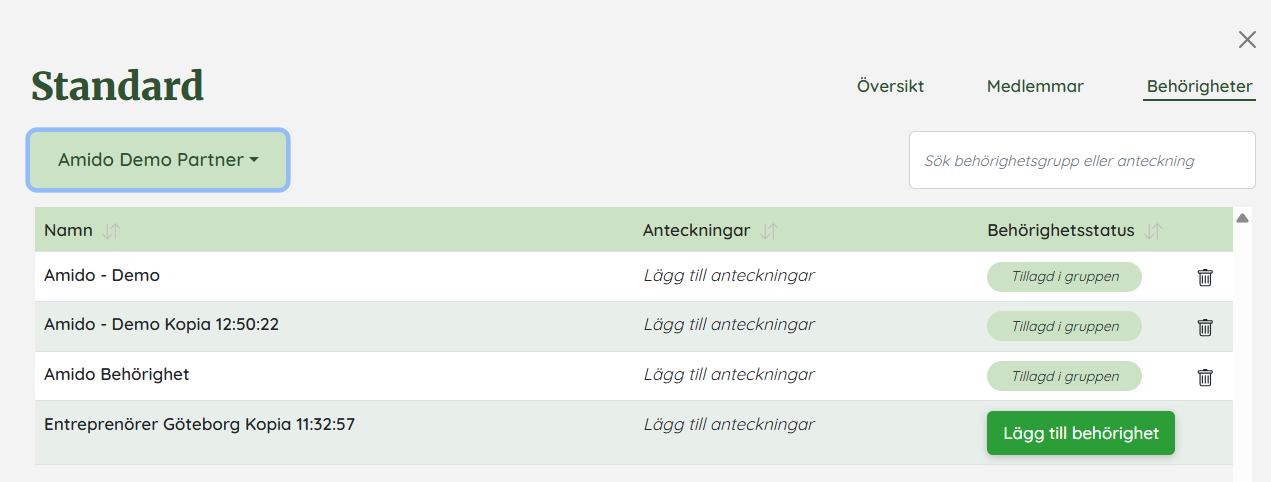 När du fått en ny behörighet tilldelad av fastighetsägaren till dig behöver du lägga till denna på en grupp.